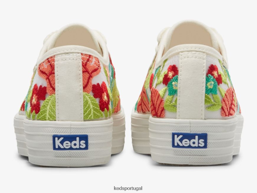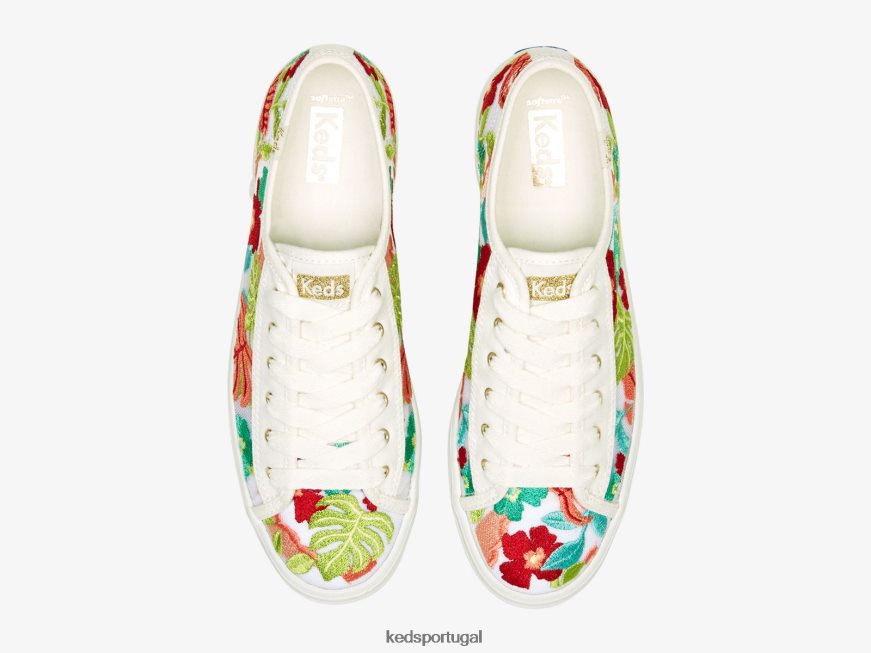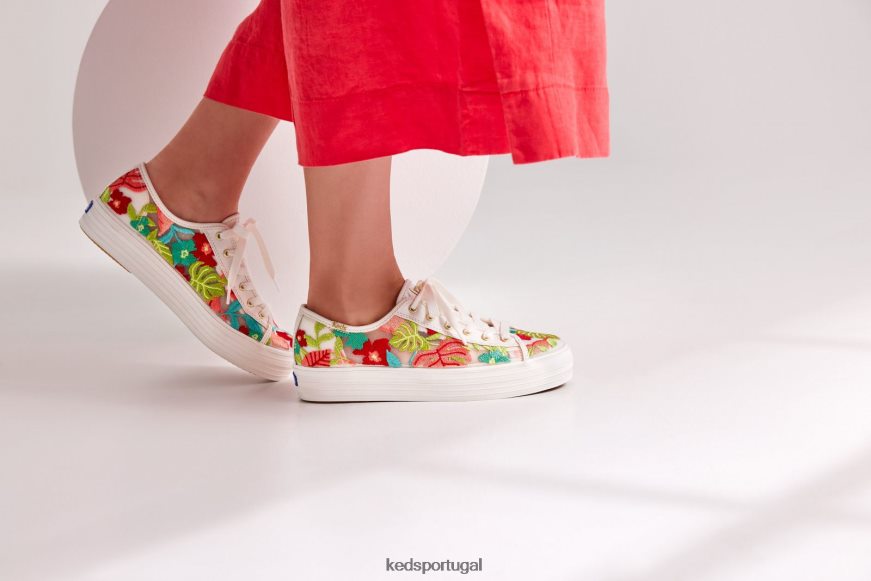 Keds tênis triple kick com bordado tropical H86LJ4152 coral branco