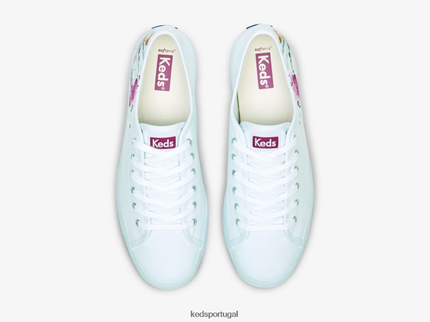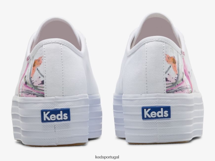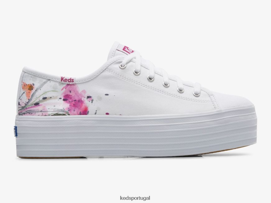 Keds tênis triplo em lona com pintura floral H86LJ4161 rosa branco